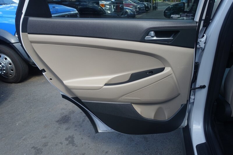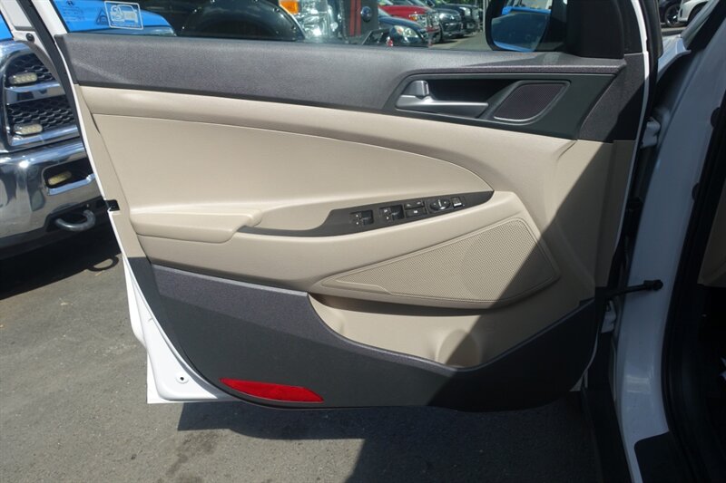 - **Exterior Features:** 17-inch alloy wheels, LED daytime running lights, and a rear spoiler that enhance the vehicle's sporty appearance. The TUCSON also comes equipped with power-adjustable side mirrors and a rearview camera for added safety during reverse maneuvers.